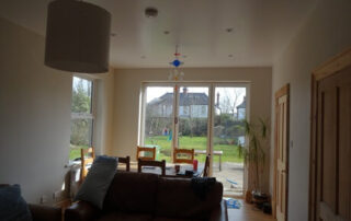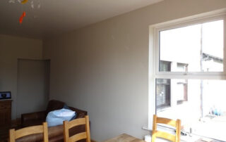 We started off with a totally gutted room. We put up a suspended ceiling, plasterboarded ceiling and all stud walls, 2 coat rendered half the room and Dot & Dabbed the other half, we then finished it all of with 2 coats of plaster to an excellent finish.